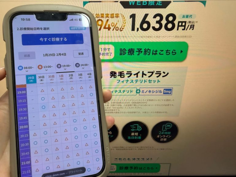 AGAオンライン診療の場合、24時間365日いつでも予約を受け付けているクリニックが多くあります。